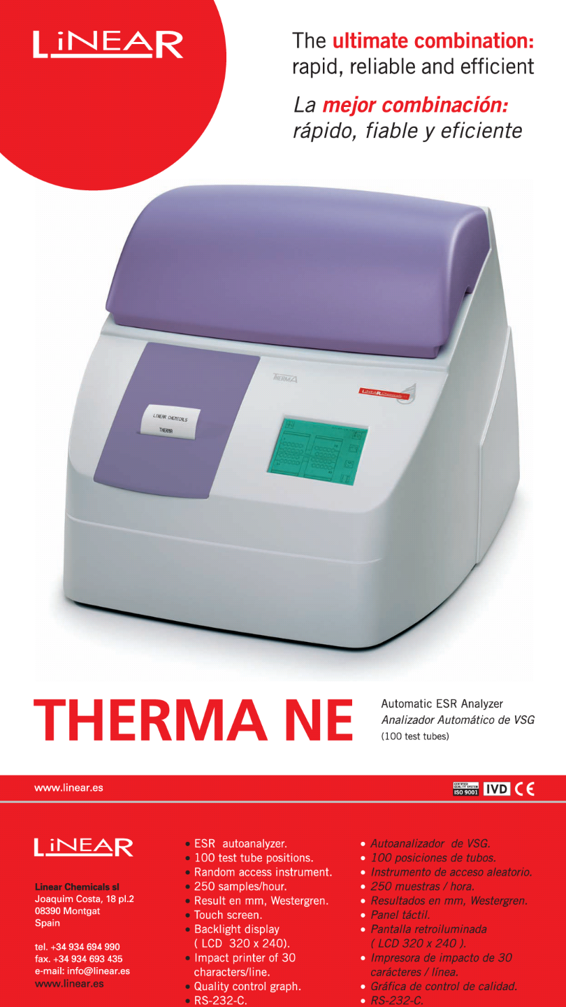 THERMA NE - The ultimate combination: rapid, reliable and efficient. Automatic ESR Analyzer